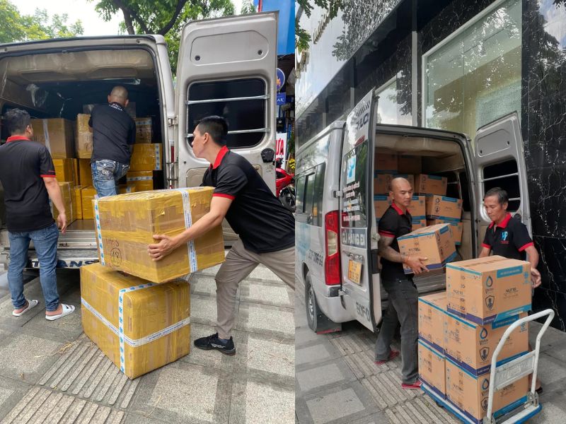 Nhân viên nhận hàng từ khách hàng gửi đến văn phòng hoặc tới tận nơi để lấy hàng